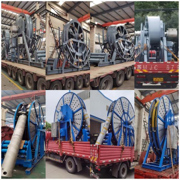 The hose winch is driven by electric motor, and its mechanical part consists of electric hoisting winch, pump tube winch reducer and open gear, pump tube reel device, electric slip ring, water slip ring, guiding roller, wall frame base and so on.